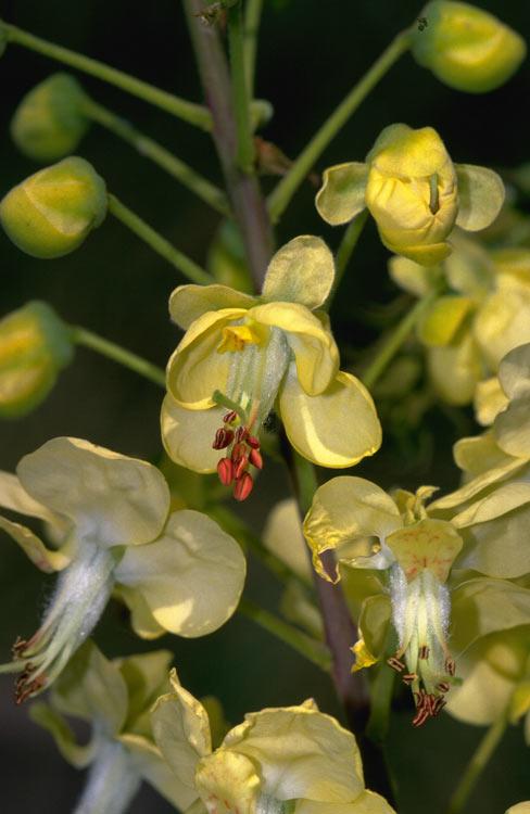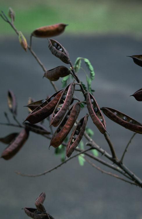 Fruiting branch with pods splitting open to reveal the seeds